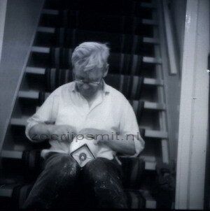 Dick Hellwich voormalige pachter Dorpshuis. Jelmer Schipper met foto's van Groenelaan.