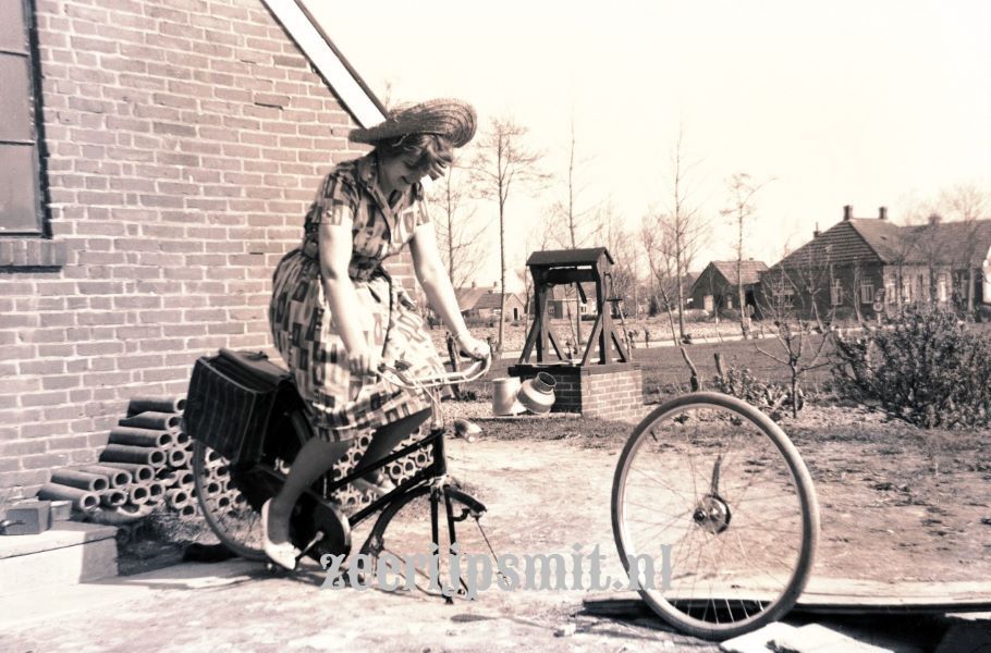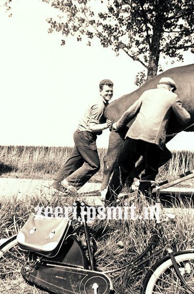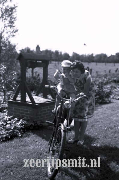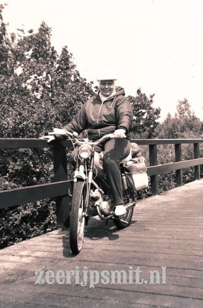 Jantje Spijk op de brommer. Jantje Spijk - Alber(dina). Spijk - Jantje Dales.