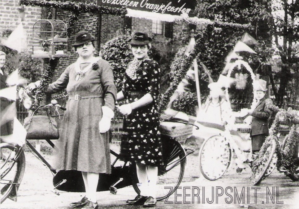 Achterste Rij: K.I. Reiffers (met schild), H.Schipper (met hoorn), O.Boerema, O.Bosman S.Pzn.(clown), Tetje Maring, G.Scherpbier, Klazien Doorn,