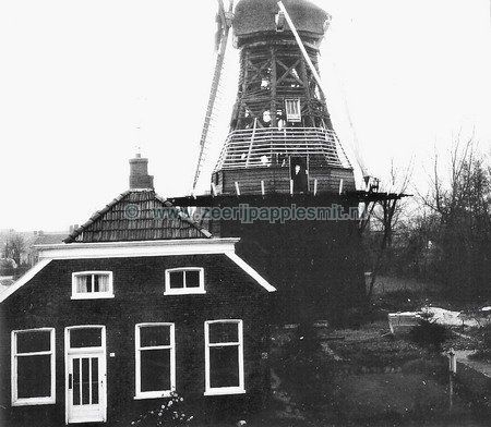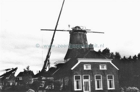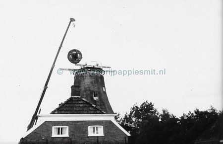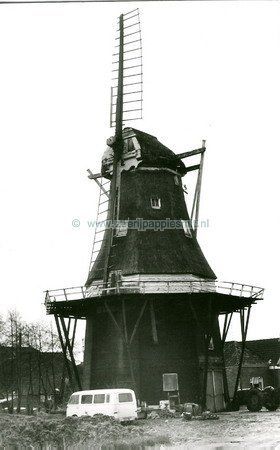 Foto's van de restauratie werkzaamheden van de molen tussen 1974 en 1977.