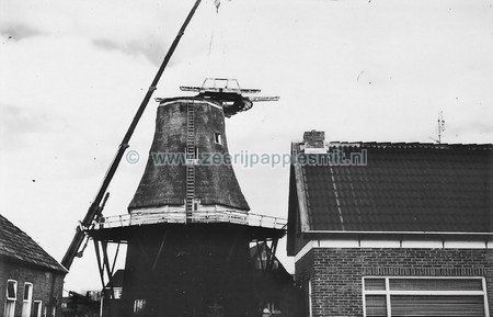 In 1865 is deze vervangen door een koren/pelmolen, er werd ook gebruik gemaakt van materialen van de molen die voorheen aan het Damsterdiep bij het dorpje Solwerd (Appingedam) stond.