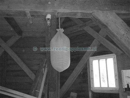 De wind zijlen worden nu gespannen om meer wind in de wieken te krijgen, en de molenaar klimt even met gemak de lucht in.
