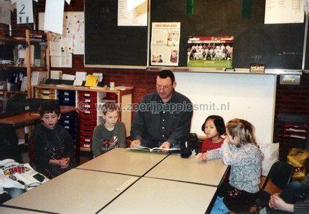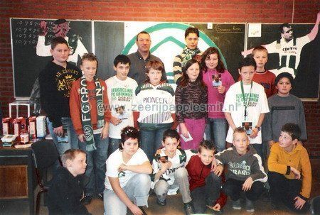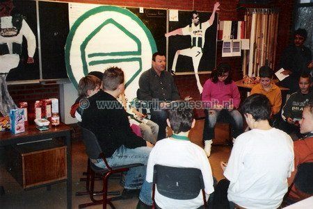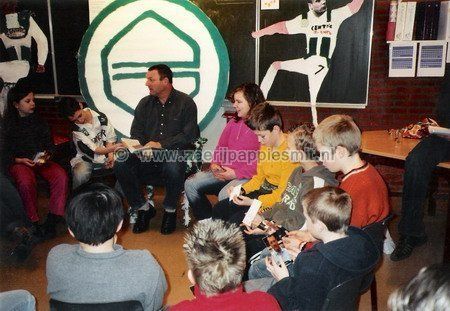 Ron Jans, de voormalig trainer van FC Groningen op bezoek bij de school OBS DE WILGENSTEE op Kwekersweg.