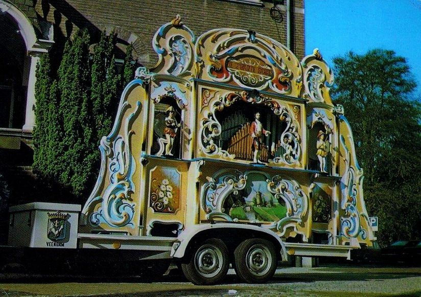 Boersema en zoon met draai orgel ( DORUS) voor station in Delfzijl. Nieuwste draaiorgel (DORUS) van Boersema in Veendam.