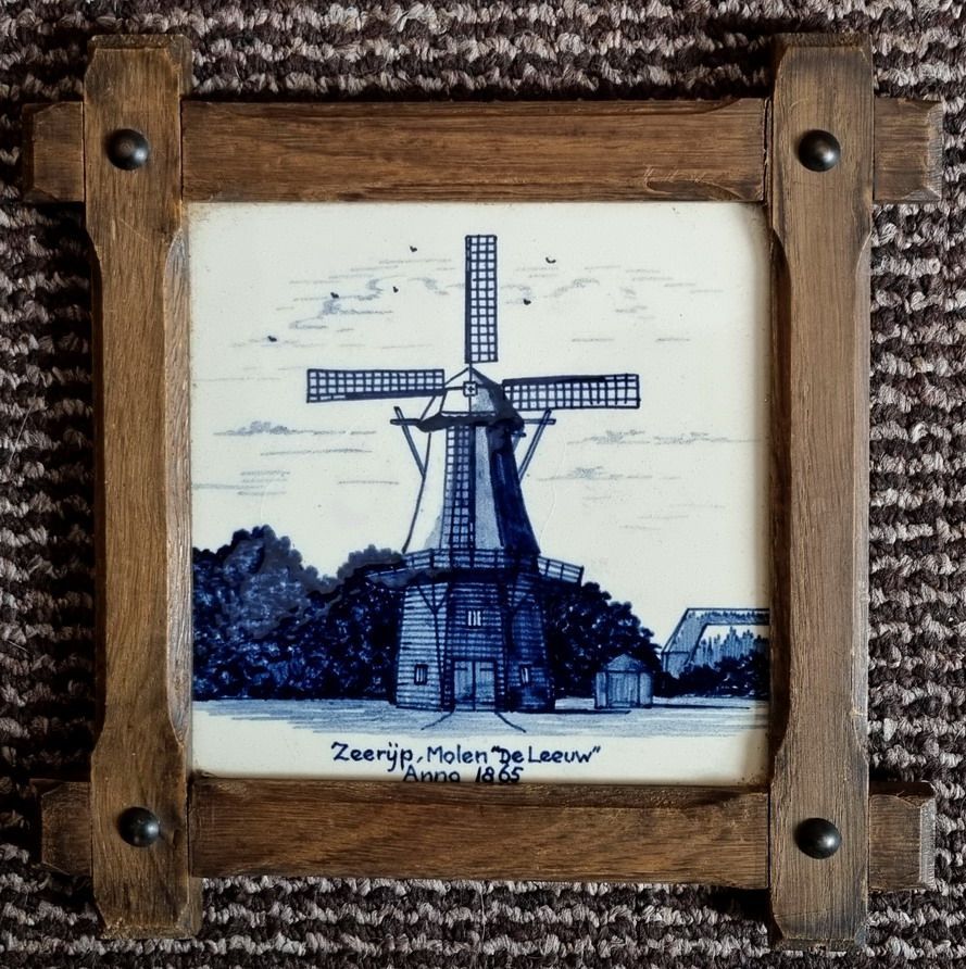 Een Delfts blauw tegeltje uit de jaren zeventig.